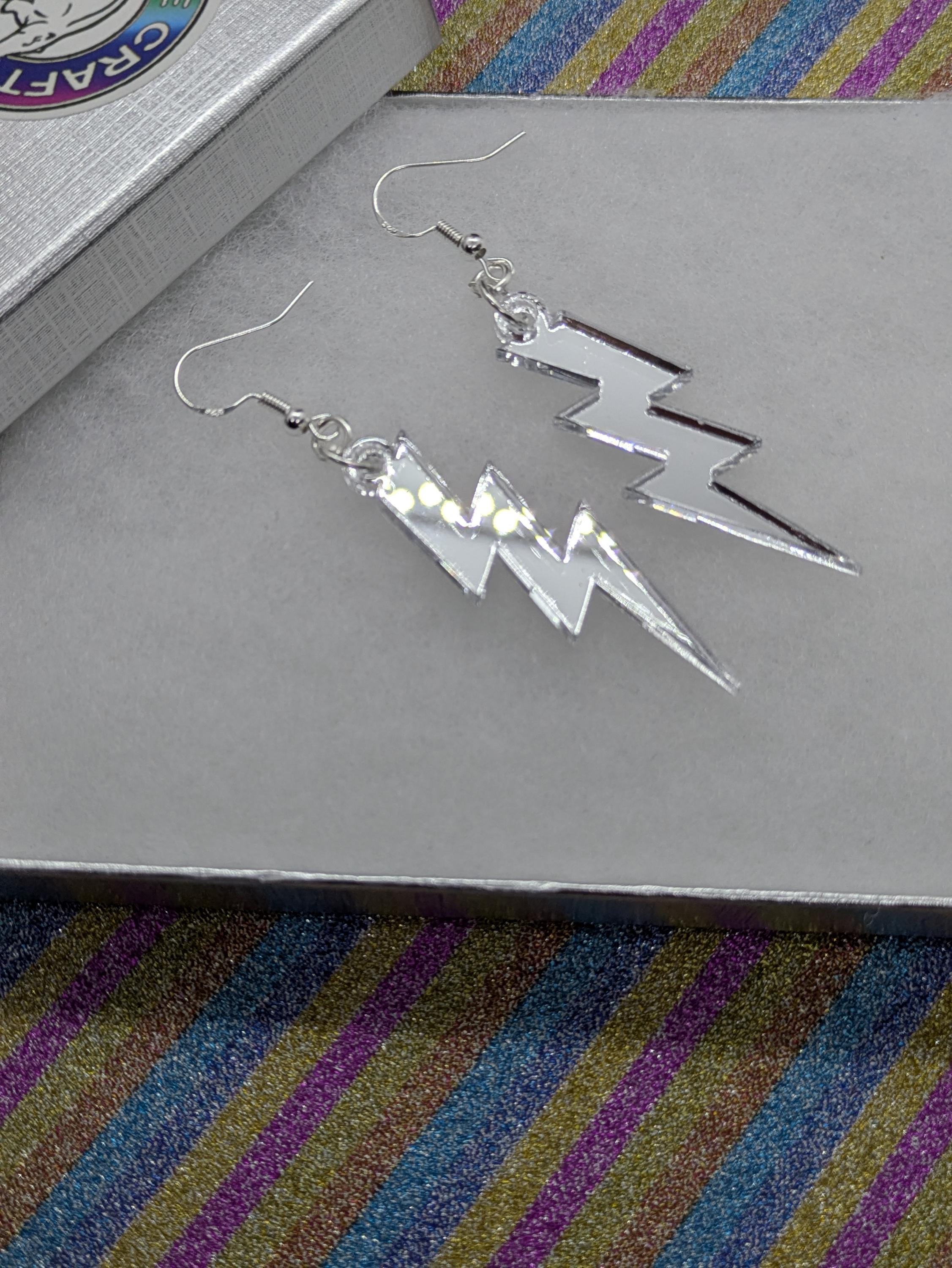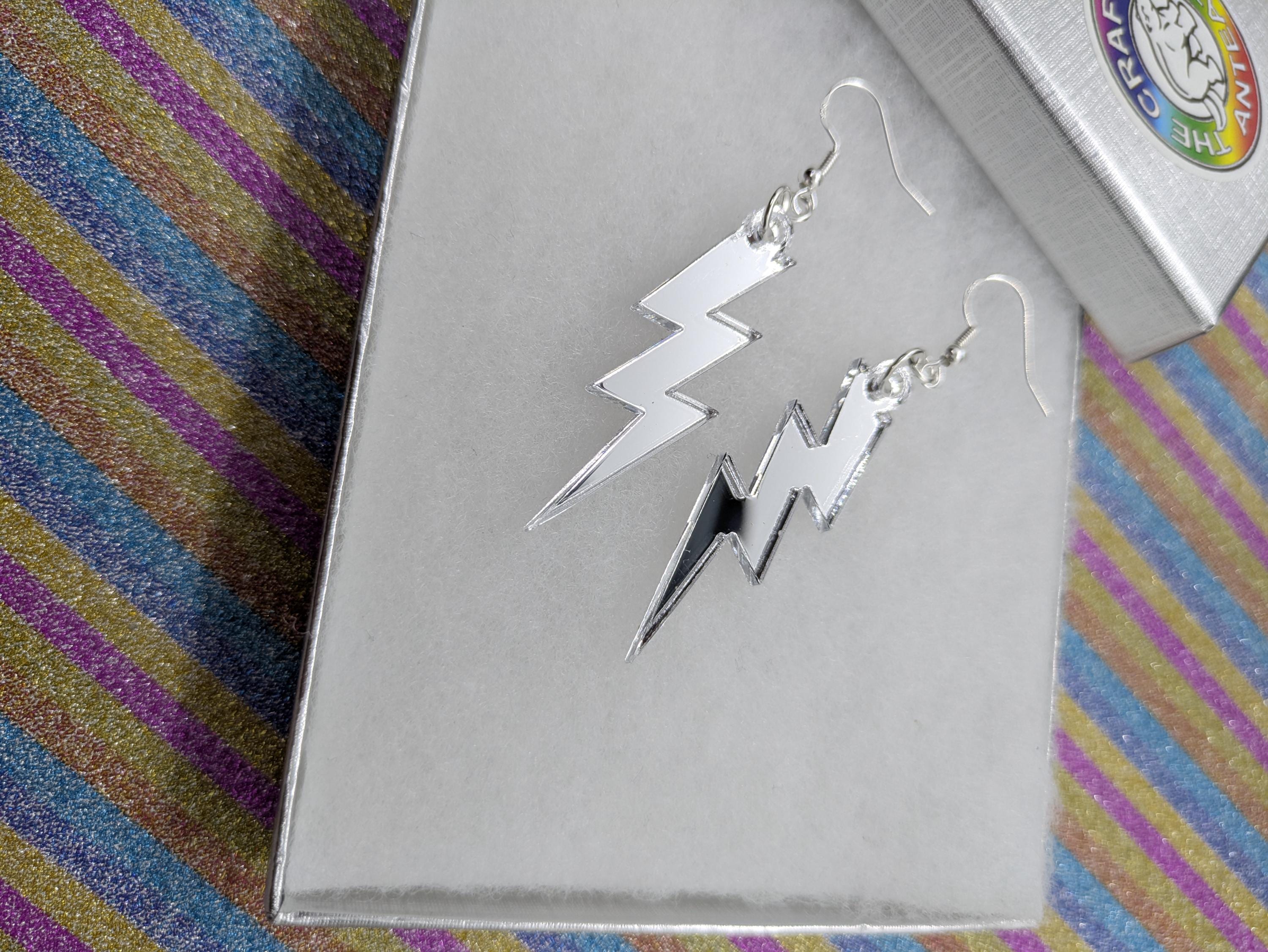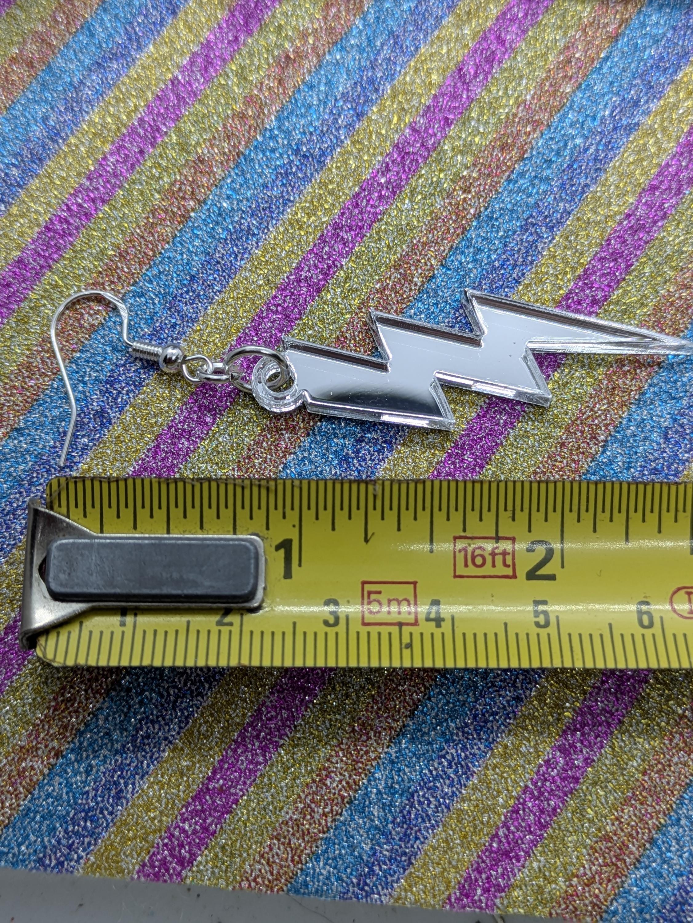 Mirror Silver lightning bolt earrings.