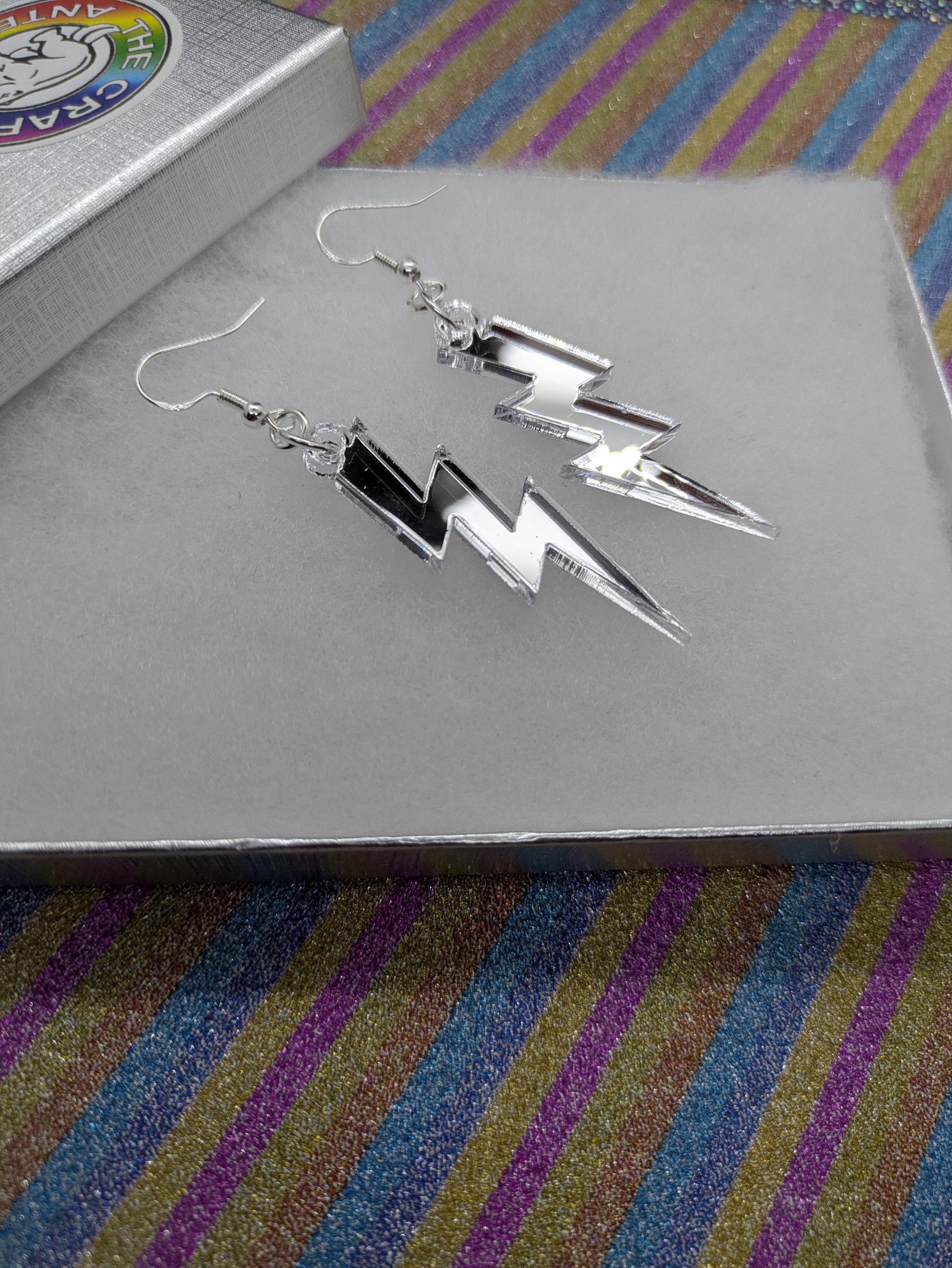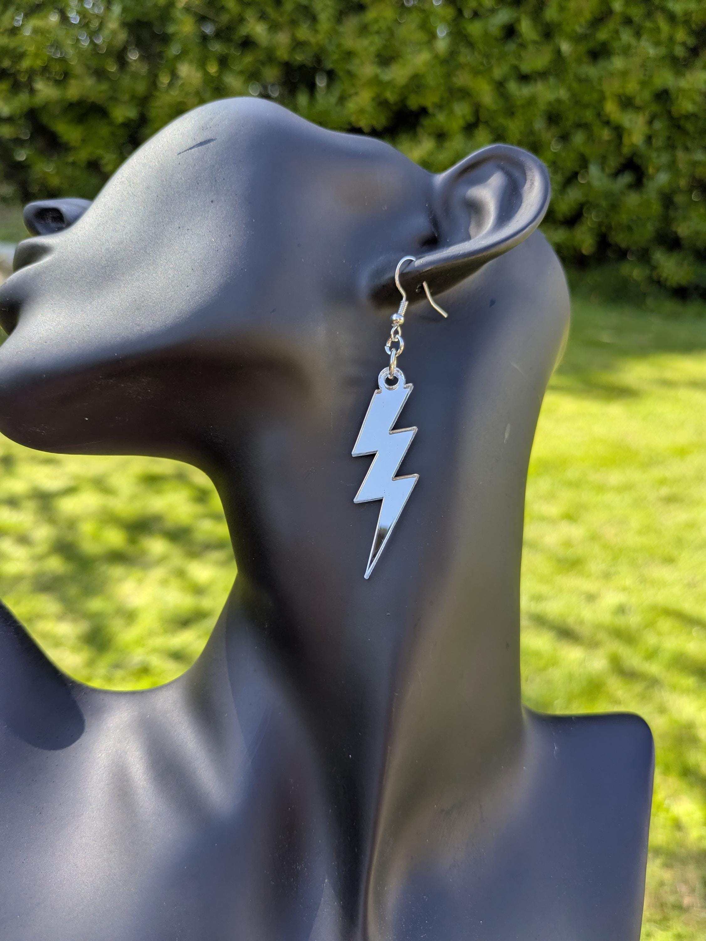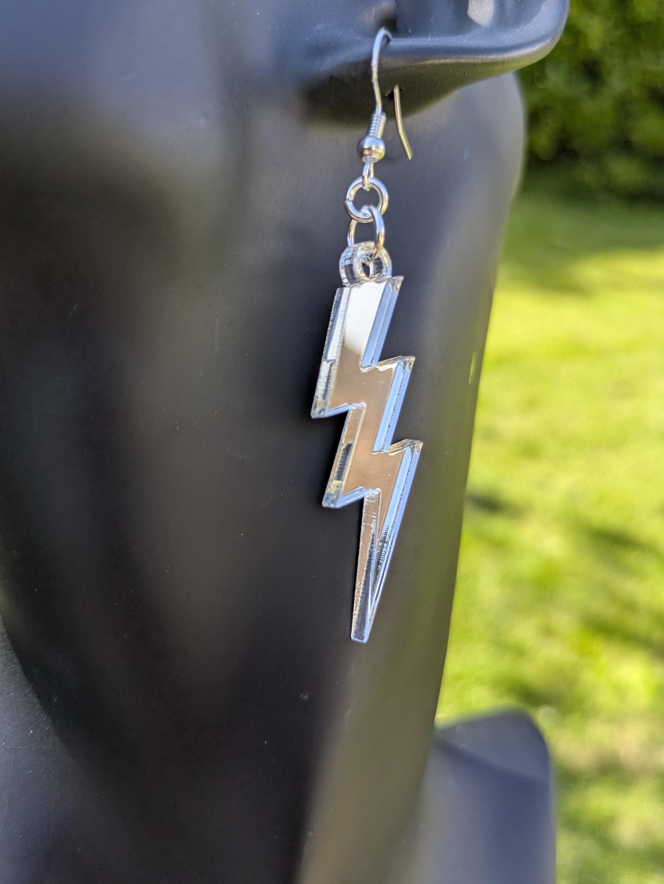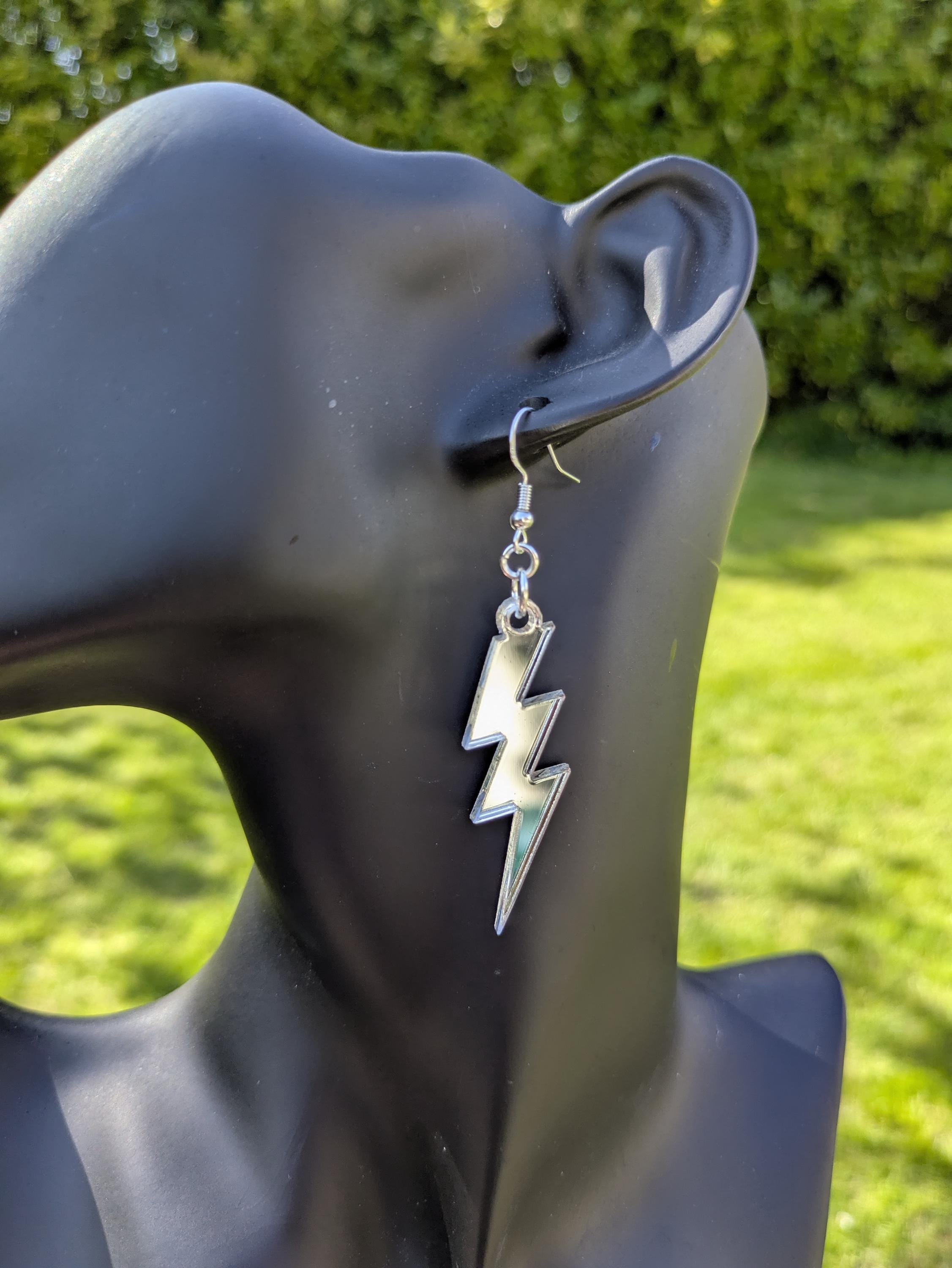 Mirror Silver lightning bolt earrings.